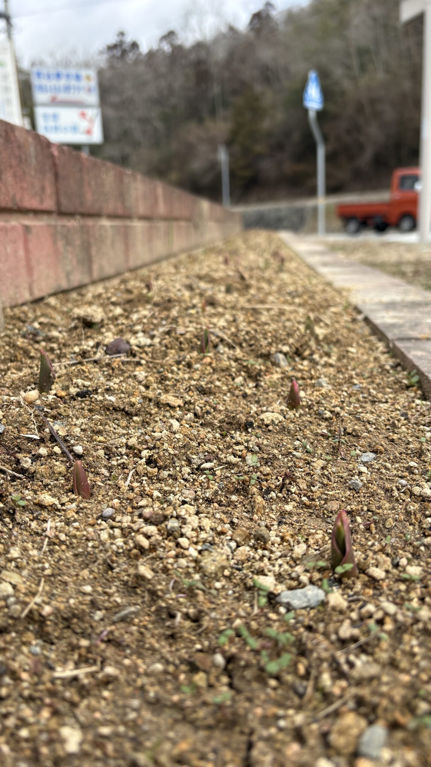 チューリップ、お花屋さんなどでは、もう見かけますね。西谷の下佐曽利休憩所では、今はまだ芽を出して少しずつ大きくなっているところ。