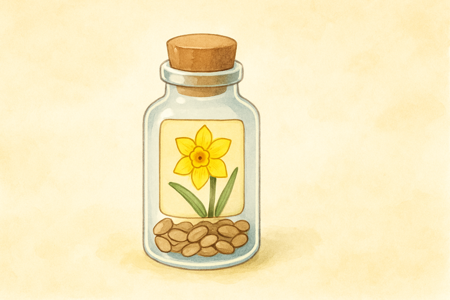 小瓶の中で、種は静かに眠っていた。在来水仙の種。それが何十年をかけて、一人の老人の手から老人の手へ、ここまで届いていた。